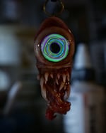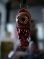 From the detailed, hand sculpted, glow in the dark, flash reflective eye to the realistic teeth this pendant is a real eye catcher.