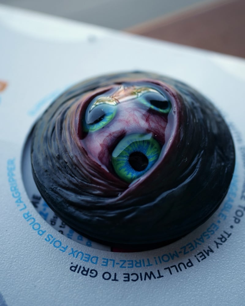 The design has been applied to a high quality socket that can be applied to all smartphones. Featuring three glow in the dark iris’s (glows a bright blue green) with realistic flash-reflective pupils. The design is super creepy and real looking...expect big reactions from your friends.