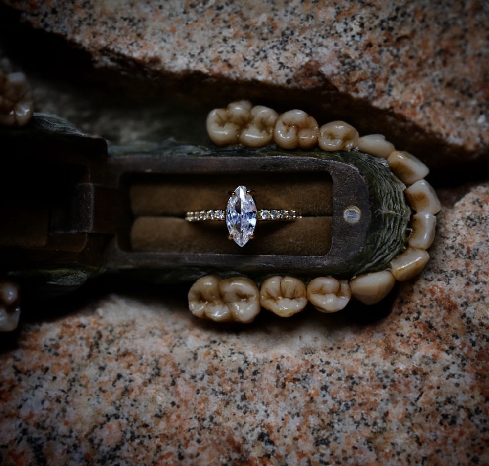 Old Bone Dental Ring Box- ring storage stash box handmade, one off