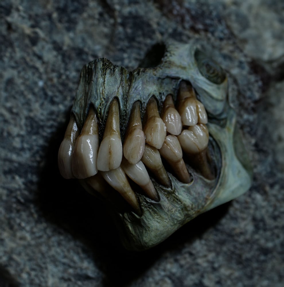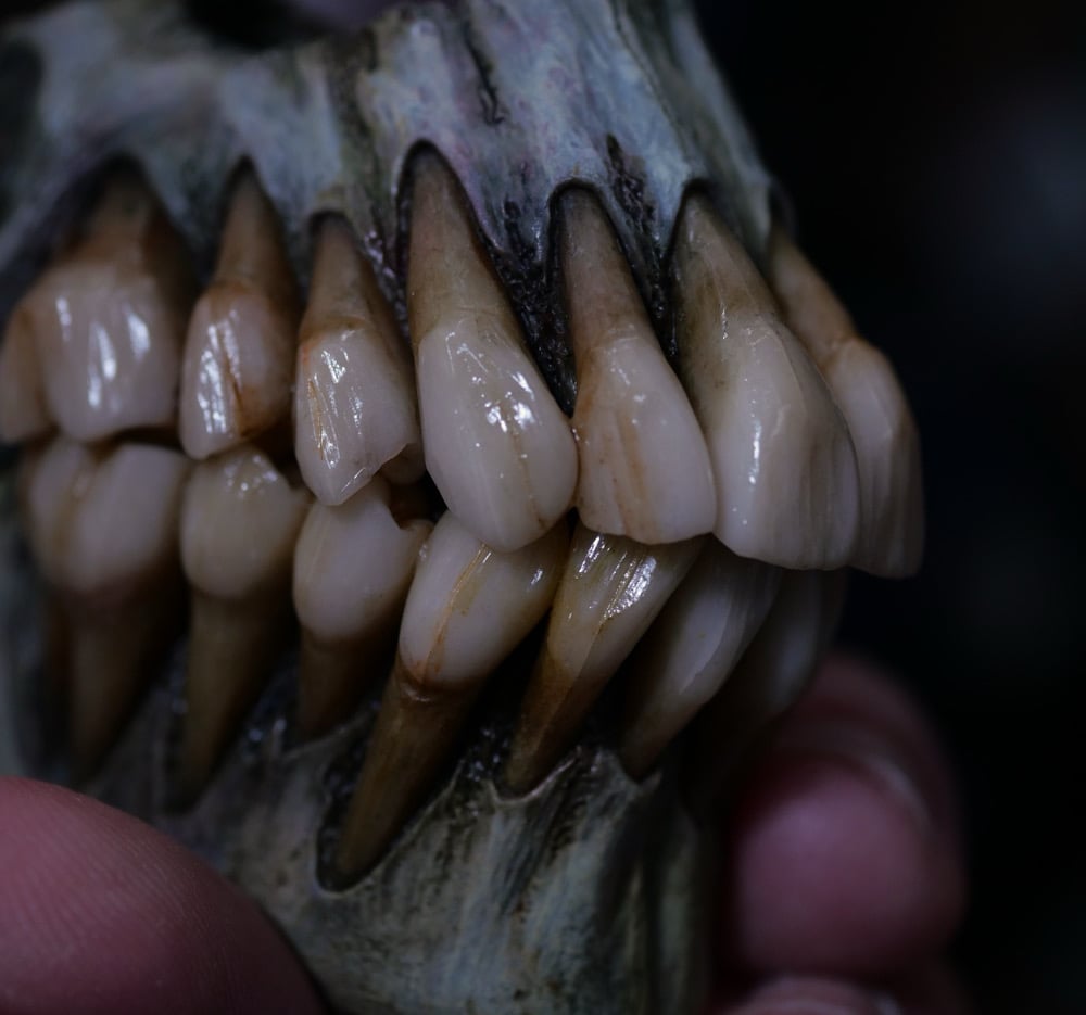 Made from wood, polymer clay and dental acrylic. Coated in a protective glaze for long lasting durability.
