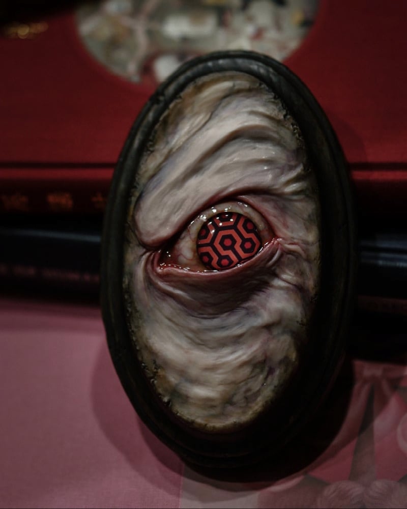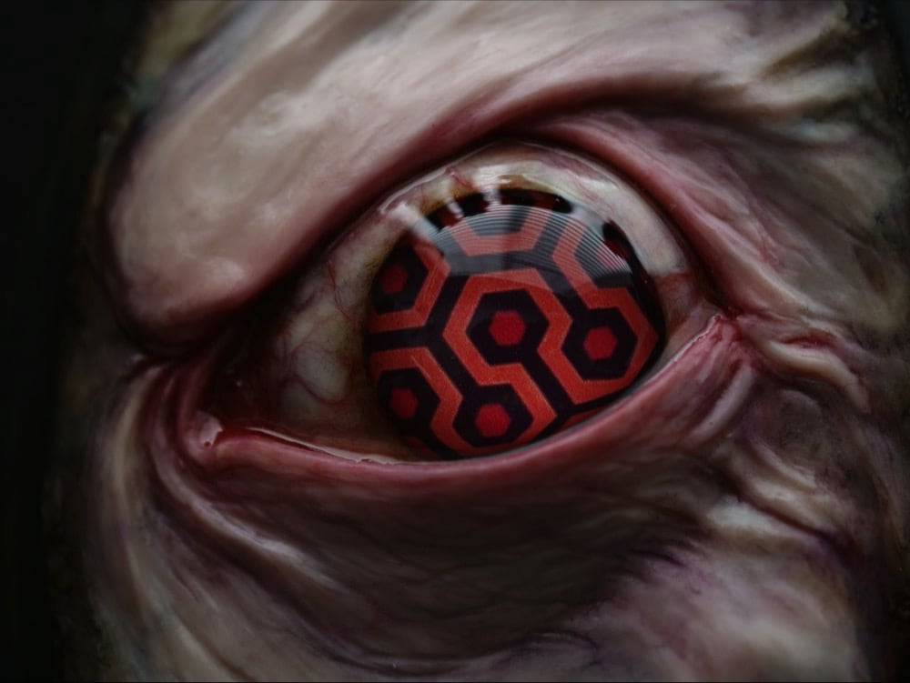 The eye iris design was inspired the pattern on The Shinings iconic carpet in the hotels back hallways.
