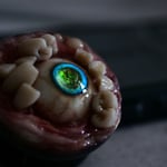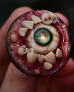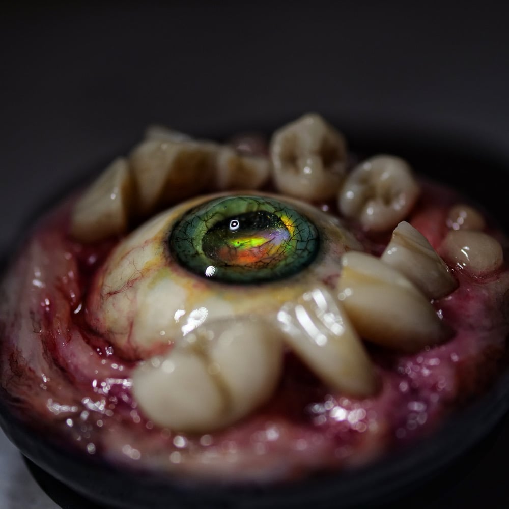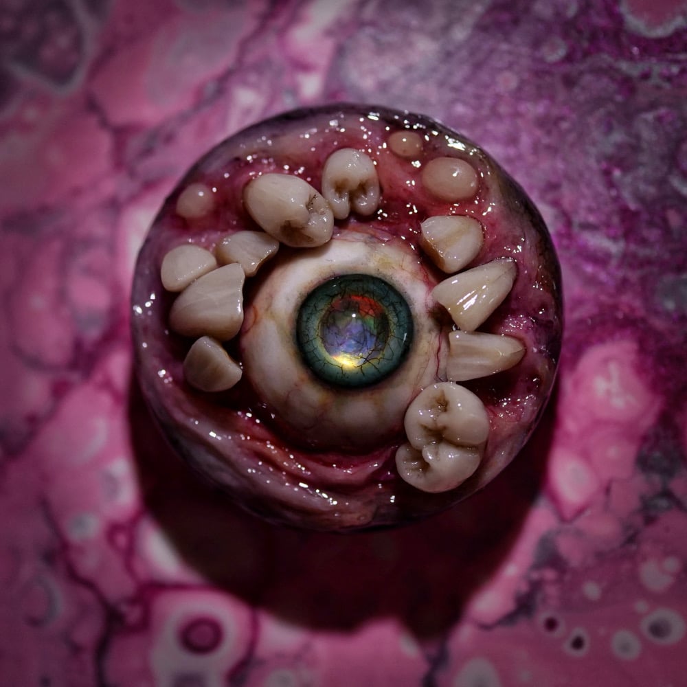 Sculpted by me, including its teeth and realistic color shift eye...and the eye glows in the dark!