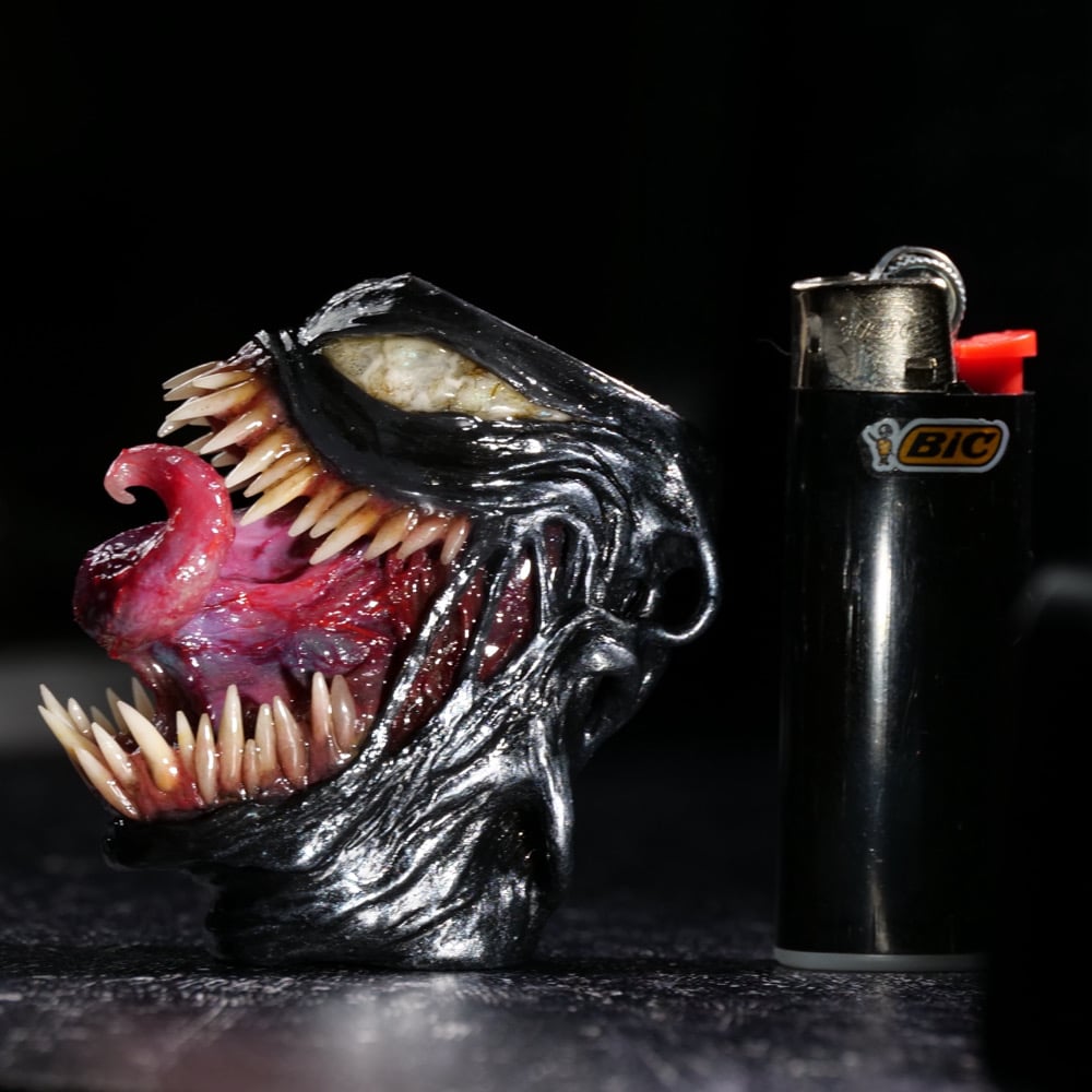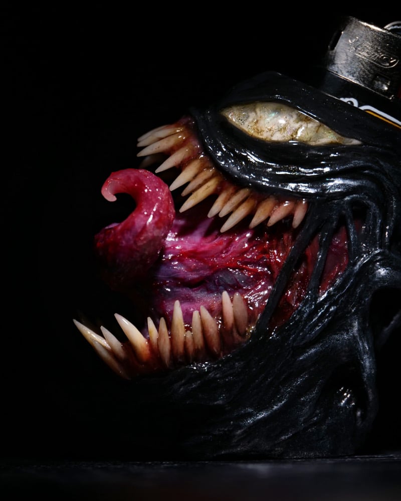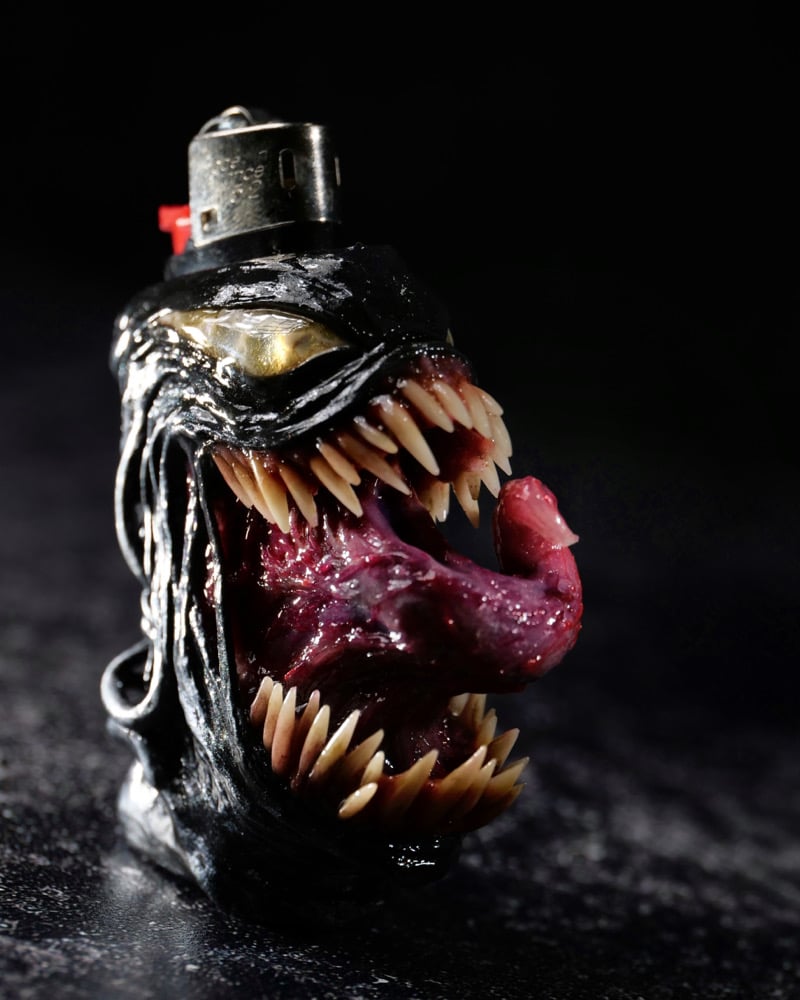 An insane looking, handmade, small sculpture that happens to also be a sleeve for your small lighters.