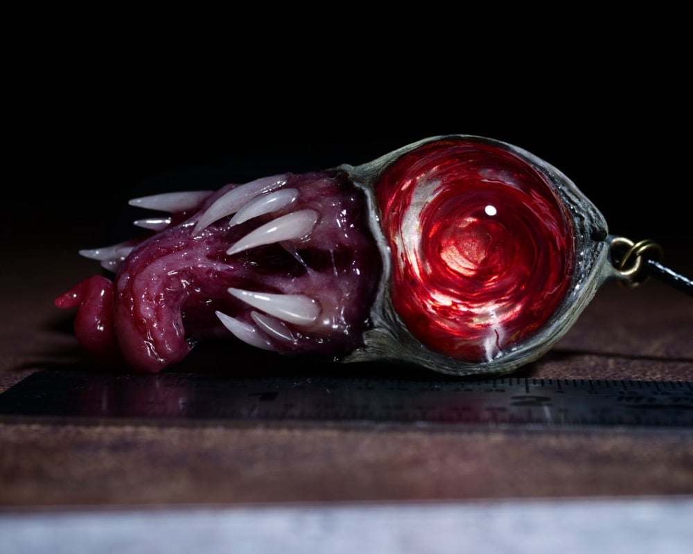 Bone textures, fangs and a deep textured eye with pops of magma-like colors.